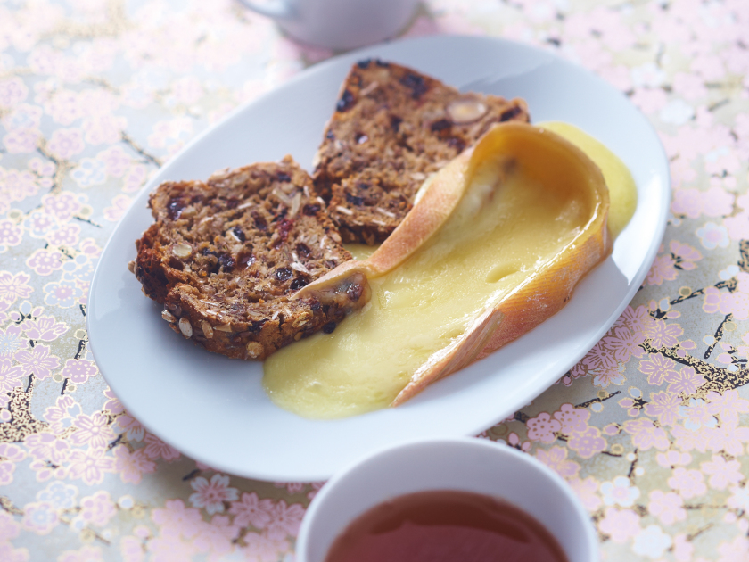 La texture fondante et onctueuse du fromage fondu avec ses notes lactées plus ou moins grillées arrondit les tanins du thé et révèle ses notes aromatiques boisées et tabac ; le pain vient compléter ce jeu de textures et de flaveurs avec son croustillant, ses notes de fruits secs et céréales et sa saveur sucrée prononcée.
