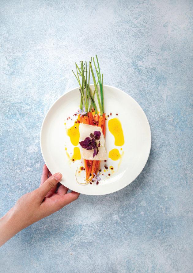 On décrit ma cuisine comme créative, j’aime me laisser porter par le produit, c’est lui qui va diriger la recette. Ensuite, j’imagine que mes origines influent aussi ma cuisine. Je suis né en Bretagne, dans la région de Rennes. Je me passionne très tôt pour la cuisine, je peux dire qu’à 12 ans déjà le sujet m’attirait. J’admirais ma mère lorsqu’elle nous préparait les repas, je me souviens des saveurs, des moments partagés et du réconfort qu’ils nous apportaient. Ce sont aujourd’hui des souvenirs que je garde ancrés en mémoire.