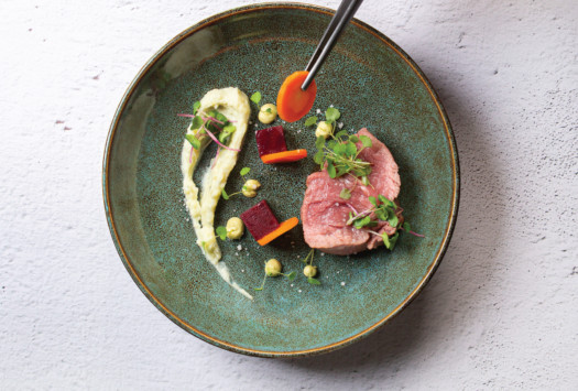 White cod cooked at a low temperature, young carrots glazed with ginger and pink...
