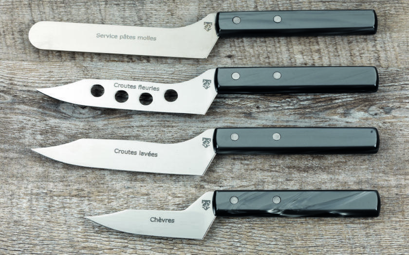 Il est important d’utiliser les couteaux appropriés à la pâte du fromage afin de ne pas mélanger les arômes entre eux. Chaque couteau est étudié pour faire des coupes nettes en fonction de la texture de la pâte et de la forme du fromage.
