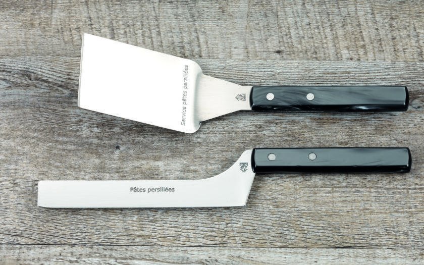 Cet outil permet de décoller délicatement la portion de fromage à pâte persillée du couteau afin de la déposer dans l’assiette sans la briser.