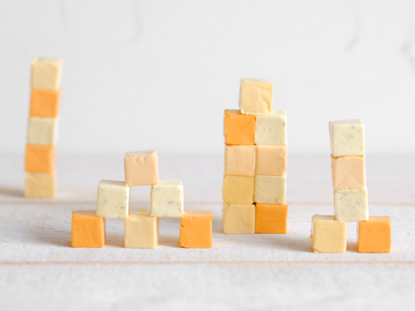 Petits cubes de fromage fondu à pâte très lisse et brillante de couleur variable en fonction des parfums, emballés hermétiquement dans un habillage aluminium.