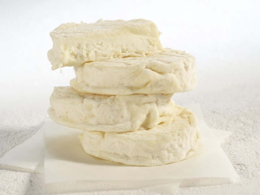 Petit palet rond et plat couvert d`une peau striée et plissée, légèrement veloutée de couleur blanche ou crème ivoire. Il a généralement une pâte bien crémeuse avec un très fin petit noyaux blanc et crayeux.